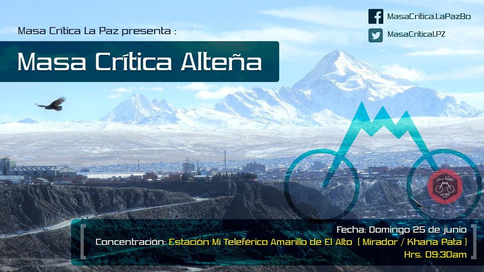 La convocatoria es gratuita y está abierta a todo aquel que tenga una bicicleta, incluso niños. La concentración será en la Estación Mi Teleférico Amarillo de El Alto (Mirador/khana Pata) a las 09.30.