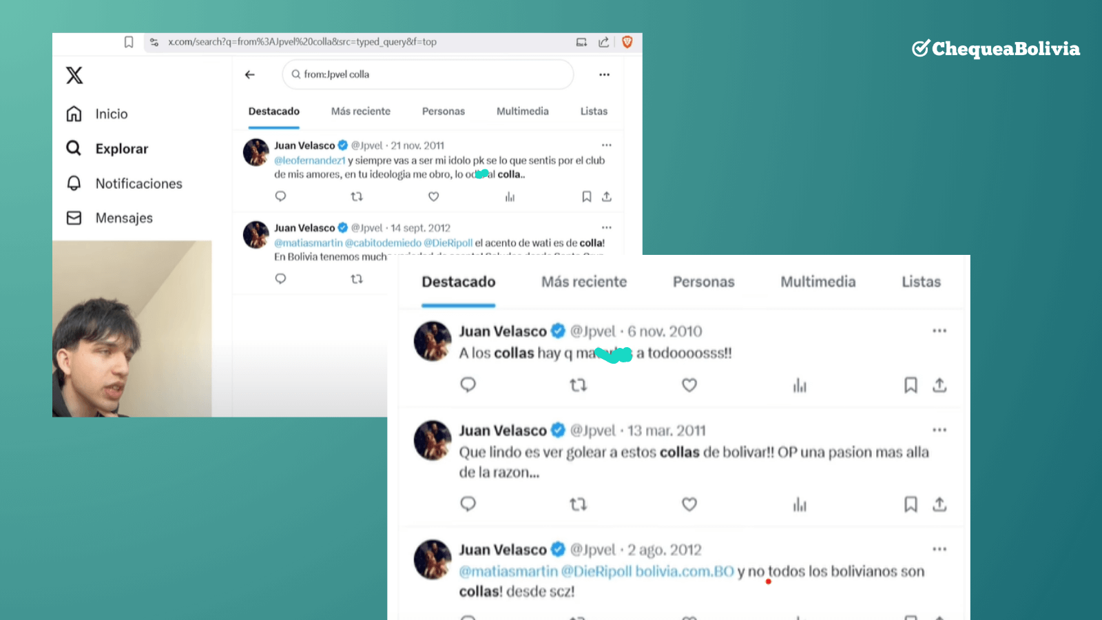 Tuits racistas de Juan Pablo Velasco son verdaderos, confirma Bolivia Verifica