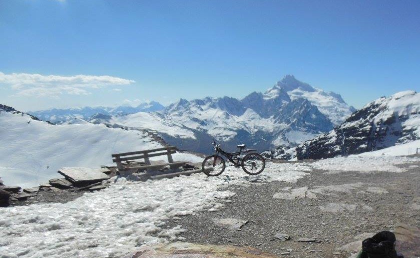 «Chavales, estoy aquí, en la cima del Chacaltaya. He empujado mi bicicleta hasta aquí. Miren esta belleza», dijo al tiempo de filmar también la vieja cabaña del Club Andino de Bolivia que dio lustre a esa pista de esquí, la única de Bolivia y la más alta del mundo.